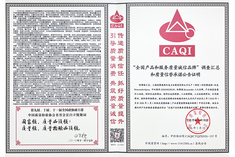 “全国产品和服务质量诚信品牌”认证,是我国质量领域兼具广度与深度的权威评价。它不仅考核产品本身性能的稳定与优异,更系统评估企业服务质量体系的完整性、响应能力及客户满意度,是对企业整体运营诚信度的综合检阅。对于身处工业润滑这一关键领域的柯赛德斯加美而言,获得此项认证意味着: